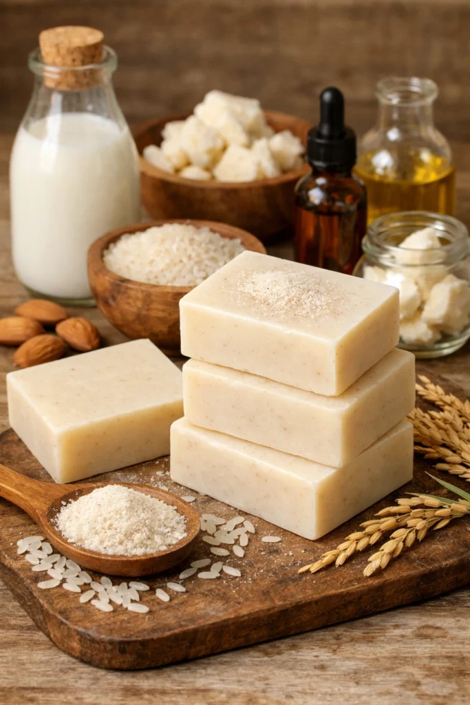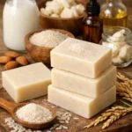 Jabón calmante de lavanda seca y harina de arroz para piel sensible hecho en casa