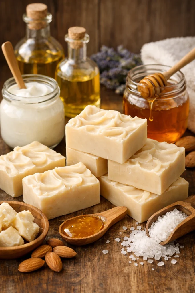 Jabón iluminador de leche de arroz casero para una piel suave, radiante y naturalmente cuidada