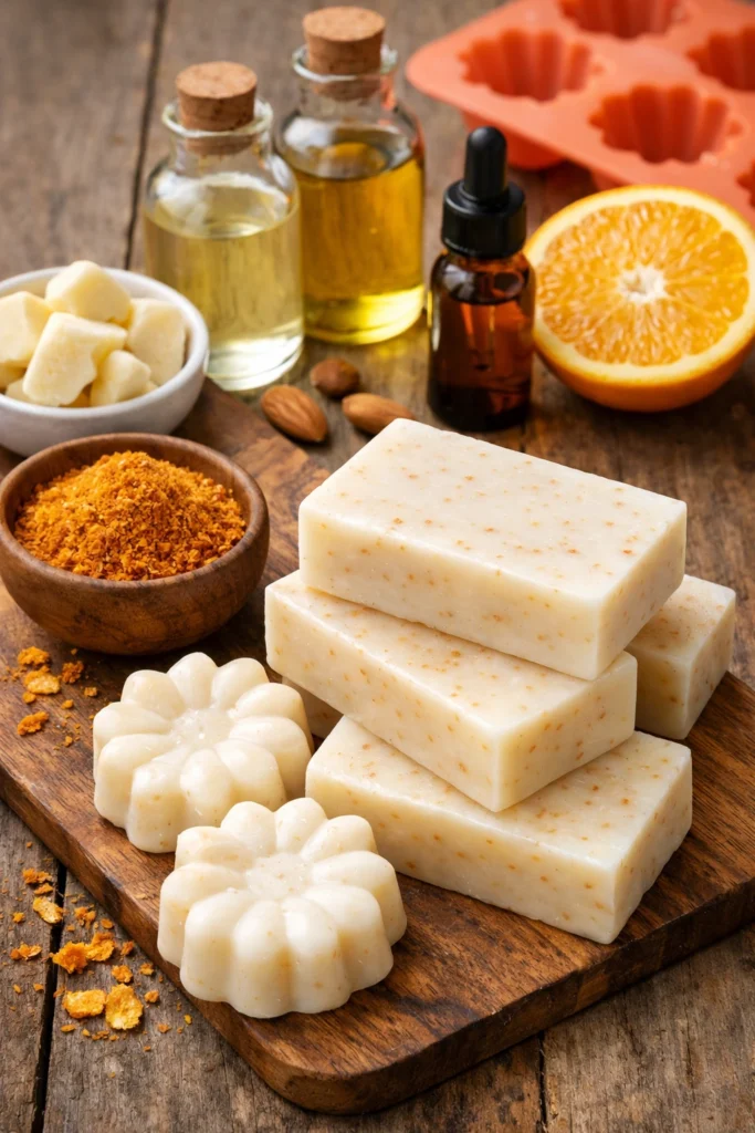 Jabón energizante de cáscara de naranja seca y manteca de cacao paso a paso para una piel suave y revitalizada