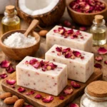 Jabón hidratante de rosas secas y leche de coco casero para piel suave y nutrida