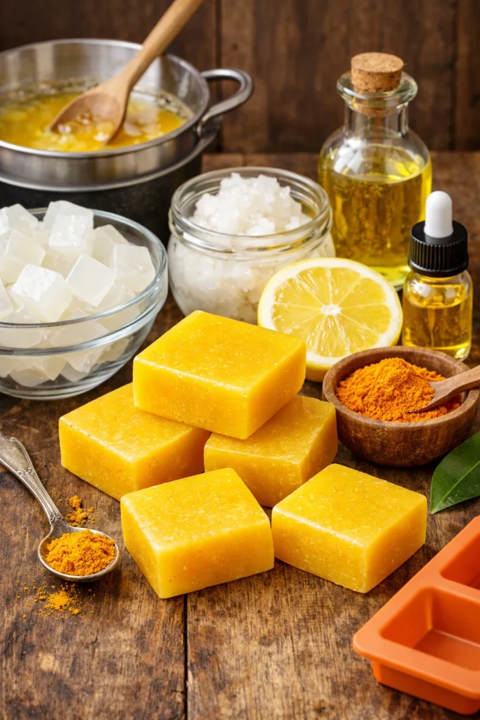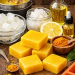Jabón iluminador de cúrcuma y limón casero para una piel radiante y uniforme
