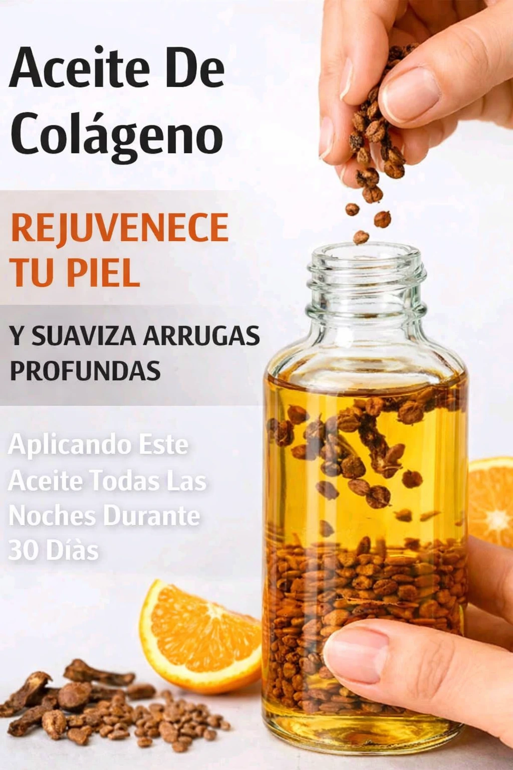 Aceite casero de colágeno con clavo y linaza para una piel nutrida y luminosa