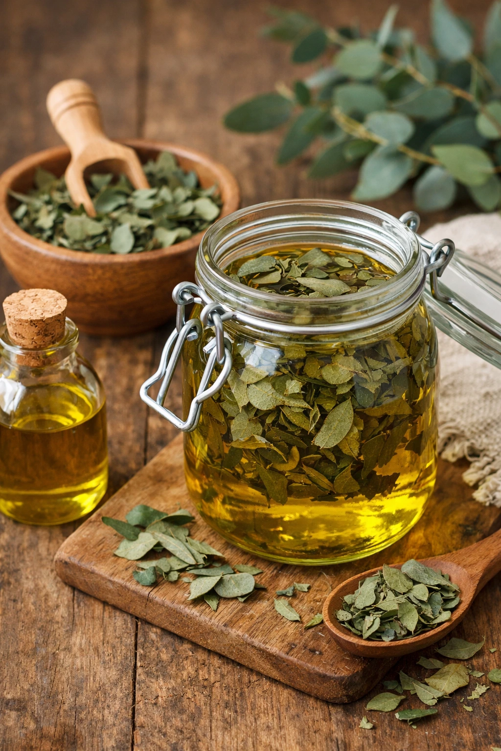 Aquí es donde empieza todo. Elegir bien el aceite portador, usar hojas realmente secas y un frasco limpio marca una gran diferencia. Un pequeño detalle que aprendí con el tiempo: cuanto más limpio esté el frasco y más secas estén las hojas, mejor aroma y más larga duración tendrá el aceite final.