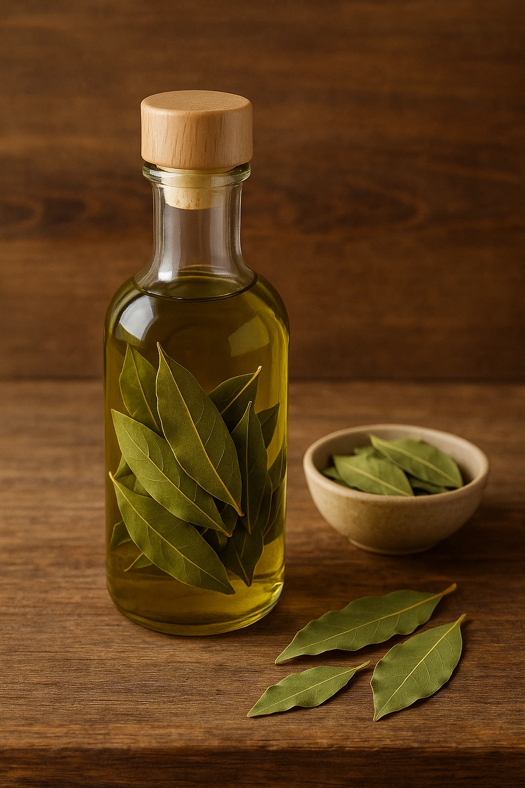 Asegúrate de que las hojas estén completamente secas y sin restos de polvo. Si tienes laurel fresco, te recomiendo secarlo unos días antes. Cuando hay humedad, el aceite puede enturbiarse o volverse inestable. Yo suelo frotar ligeramente las hojas entre las manos antes de introducirlas en el frasco porque eso libera más aroma.