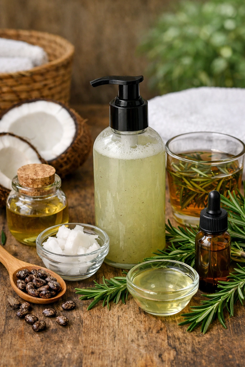 Champú fortalecedor de ricino y romero casero para un cabello más fuerte y brillante
