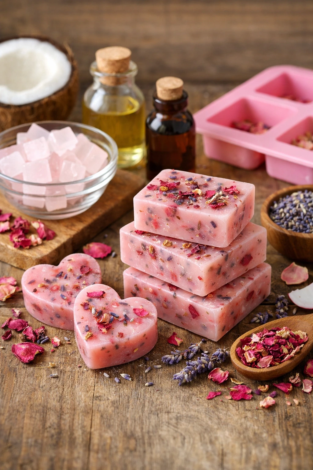 Siempre me han gustado los jabones artesanales con aromas naturales. No hay nada como abrir un jabón recién hecho y sentir ese perfume suave que recuerda a un jardín. Este jabón de rosa y lavanda nació justamente de esa idea: algo simple, natural y agradable para usar todos los días.