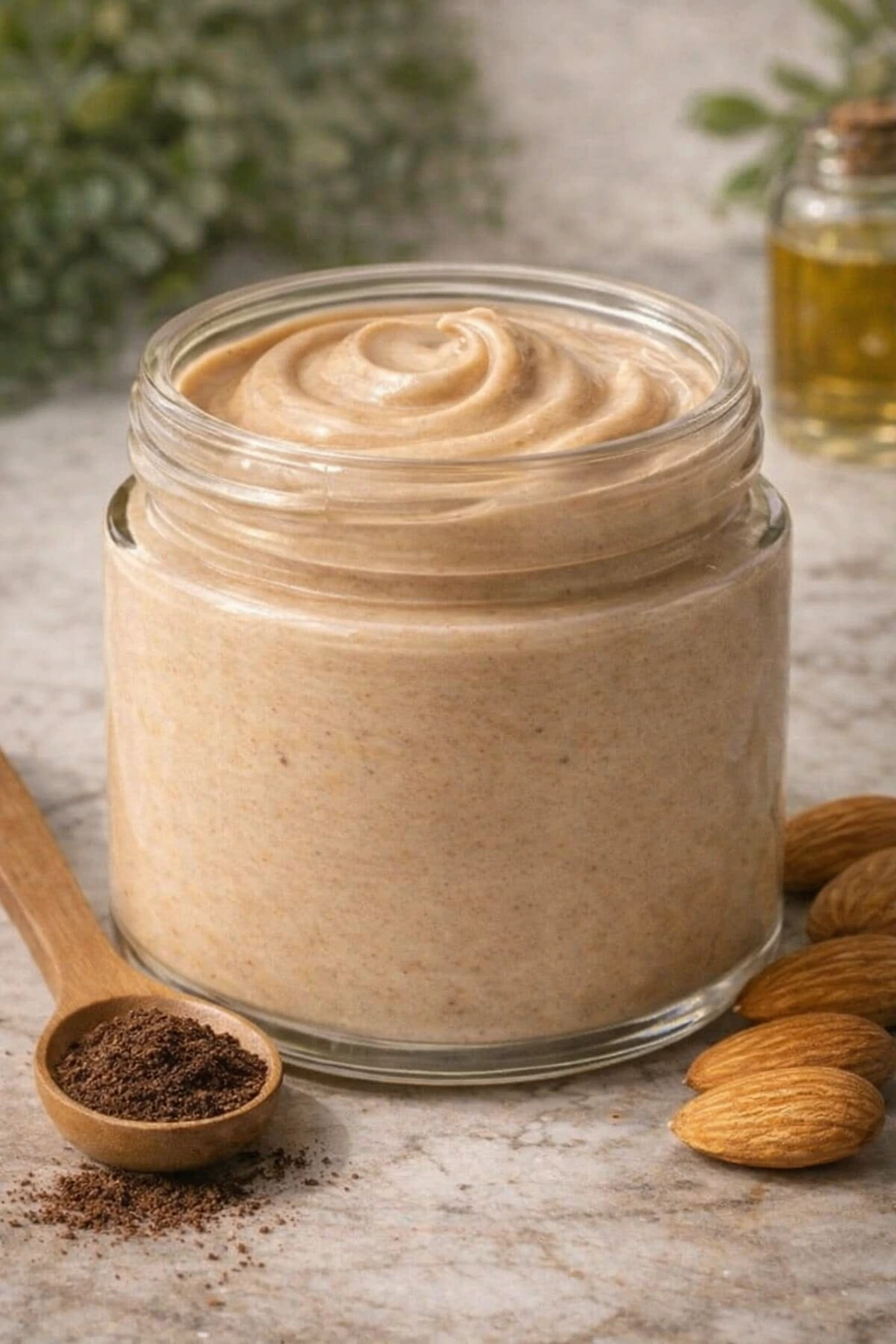 Esta receta combina café molido, aceite de almendras y maicena para crear una textura cremosa que se siente fresca y ligera sobre la piel. Es una preparación fácil, pero cuando se hace con cuidado, el resultado es sorprendentemente agradable.
