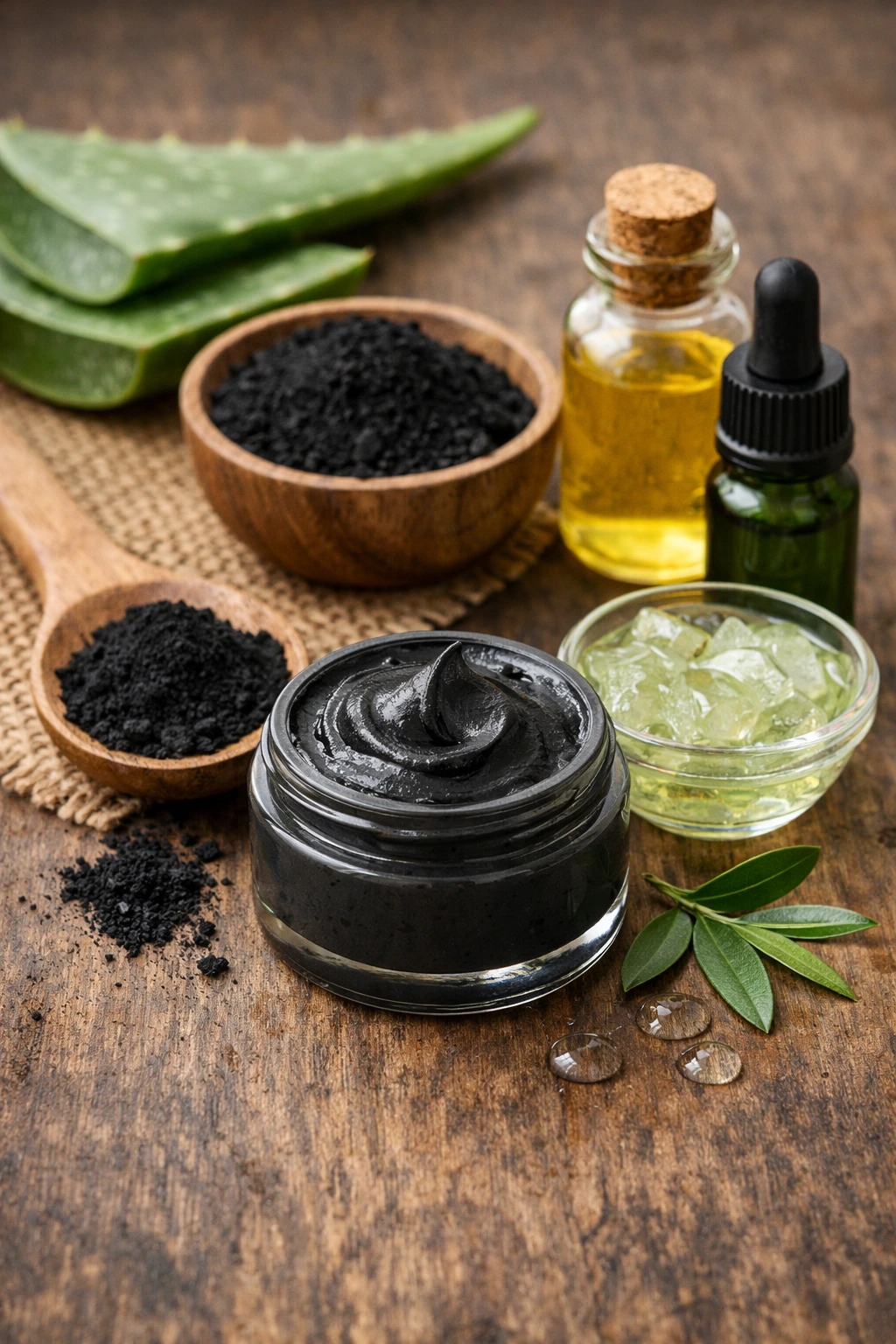 El aloe debe ser puro y sin alcohol ni perfumes para evitar irritación. El carbón tiene que ser cosmético, no el medicinal. El aceite de jojoba es ideal para piel grasa porque hidrata sin dejar sensación aceitosa. El aceite esencial de árbol de té es útil, pero opcional y no recomendable para piel extremadamente sensible.