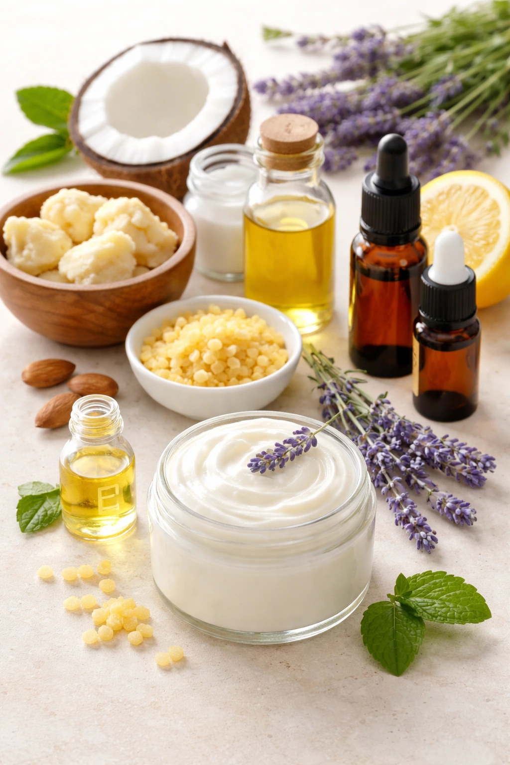 Cada componente cumple una función concreta. El karité aporta nutrición profunda, el coco suaviza, la cera da estructura y la vitamina E contribuye a conservar mejor la mezcla. Es una receta pequeña, perfecta para mantener siempre fresca la crema.