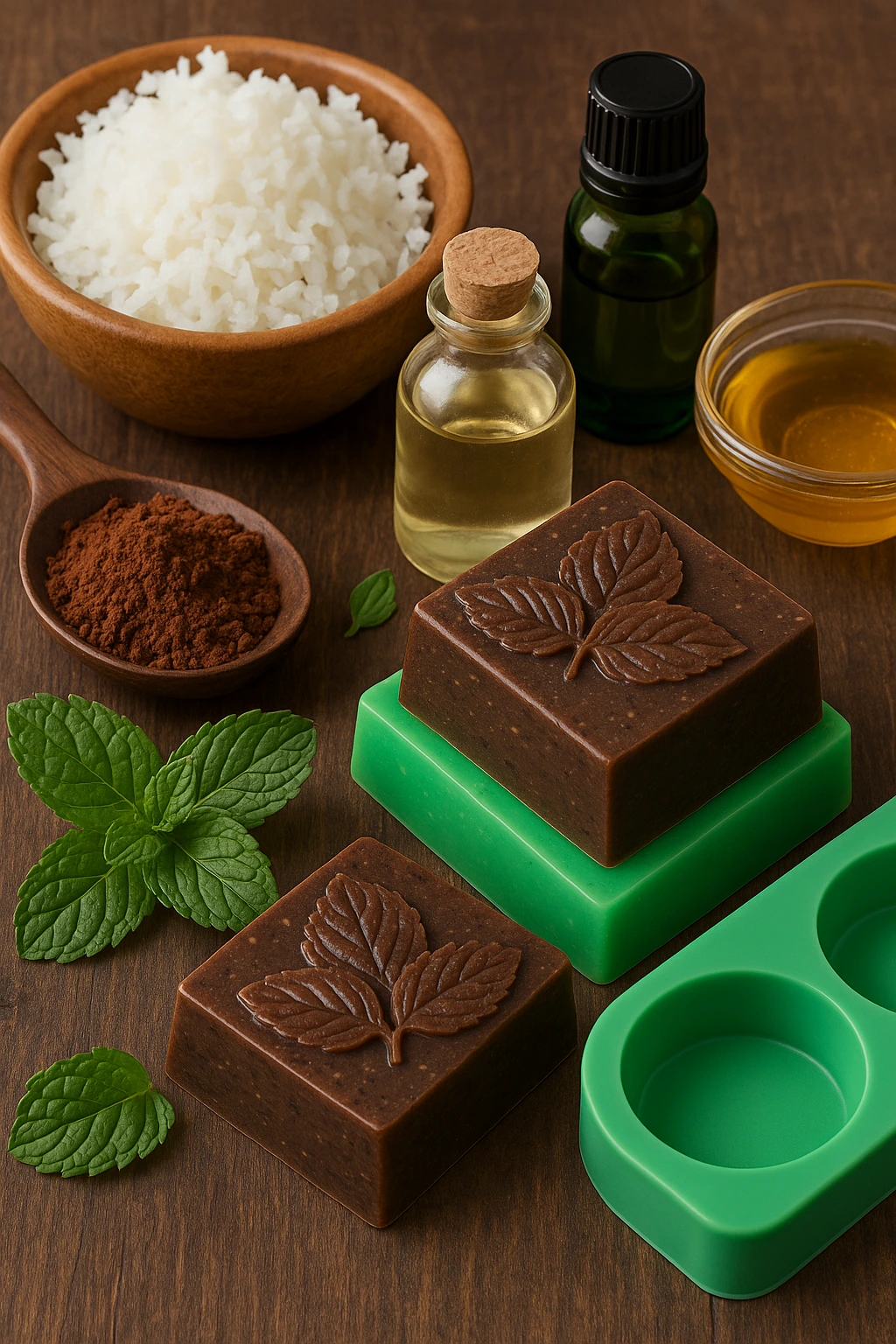 Este jabón es perfecto para el uso diario en manos y cuerpo. La menta deja una sensación de frescura inmediata en la piel, mientras que el cacao aporta suavidad y un ligero aroma dulce.