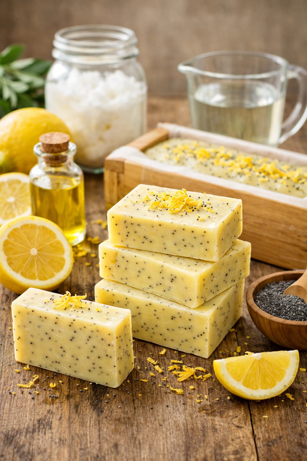 Hay algo especial en los aromas frescos que llenan la cocina cuando preparo jabón casero. Este jabón de limón con semillas de amapola tiene ese perfume limpio que recuerda a una mañana soleada después de abrir las ventanas. Cada vez que lo hago, me sorprende cómo una mezcla sencilla de aceites puede transformarse en barras firmes, cremosas y llenas de vida.