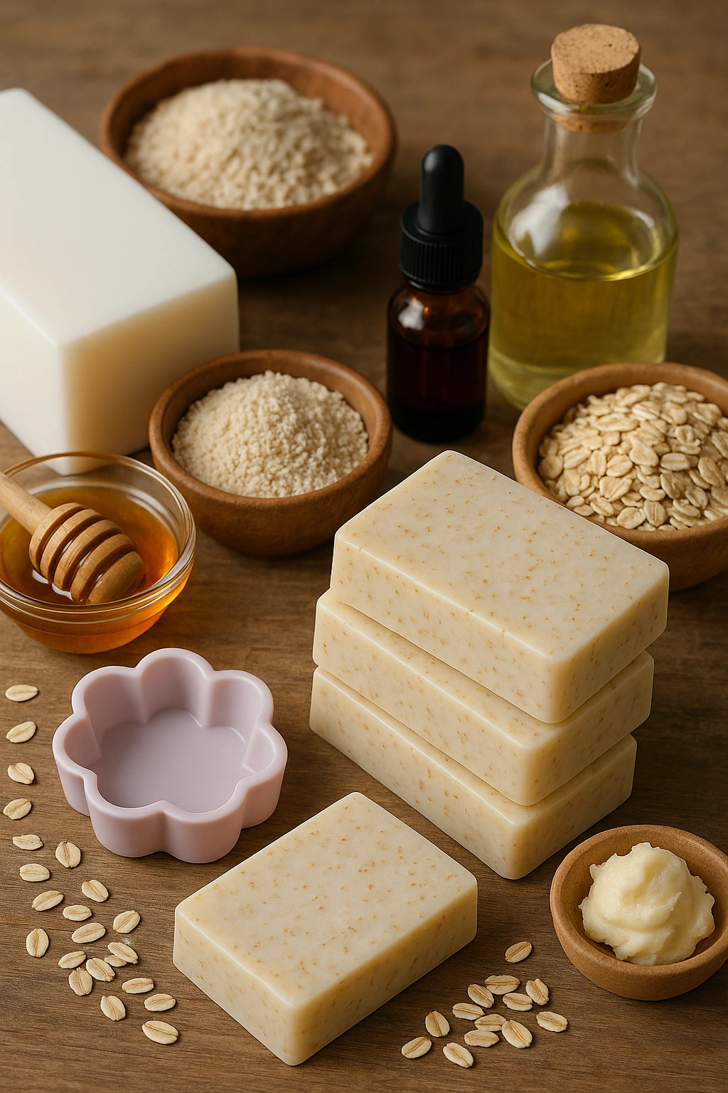 Hay algo profundamente reconfortante en hacer tu propio jabón en casa. Esta receta combina avena molida, manteca de karité, miel y un toque de vainilla para crear una barra cremosa que deja la piel más suave desde el primer uso. Me gusta especialmente porque cada ingrediente aporta una función clara: la avena calma, la karité hidrata, la miel suaviza y la vainilla envuelve todo con un aroma dulce que te acompaña durante la ducha. No es solo un jabón; es una pequeña experiencia sensorial que puedes adaptar a tu gusto. Cuando lo preparo, siempre noto cómo el aroma tibio de la vainilla llena la cocina mientras la mezcla se enfría, y eso ya anticipa lo agradable que será usarlo después.
