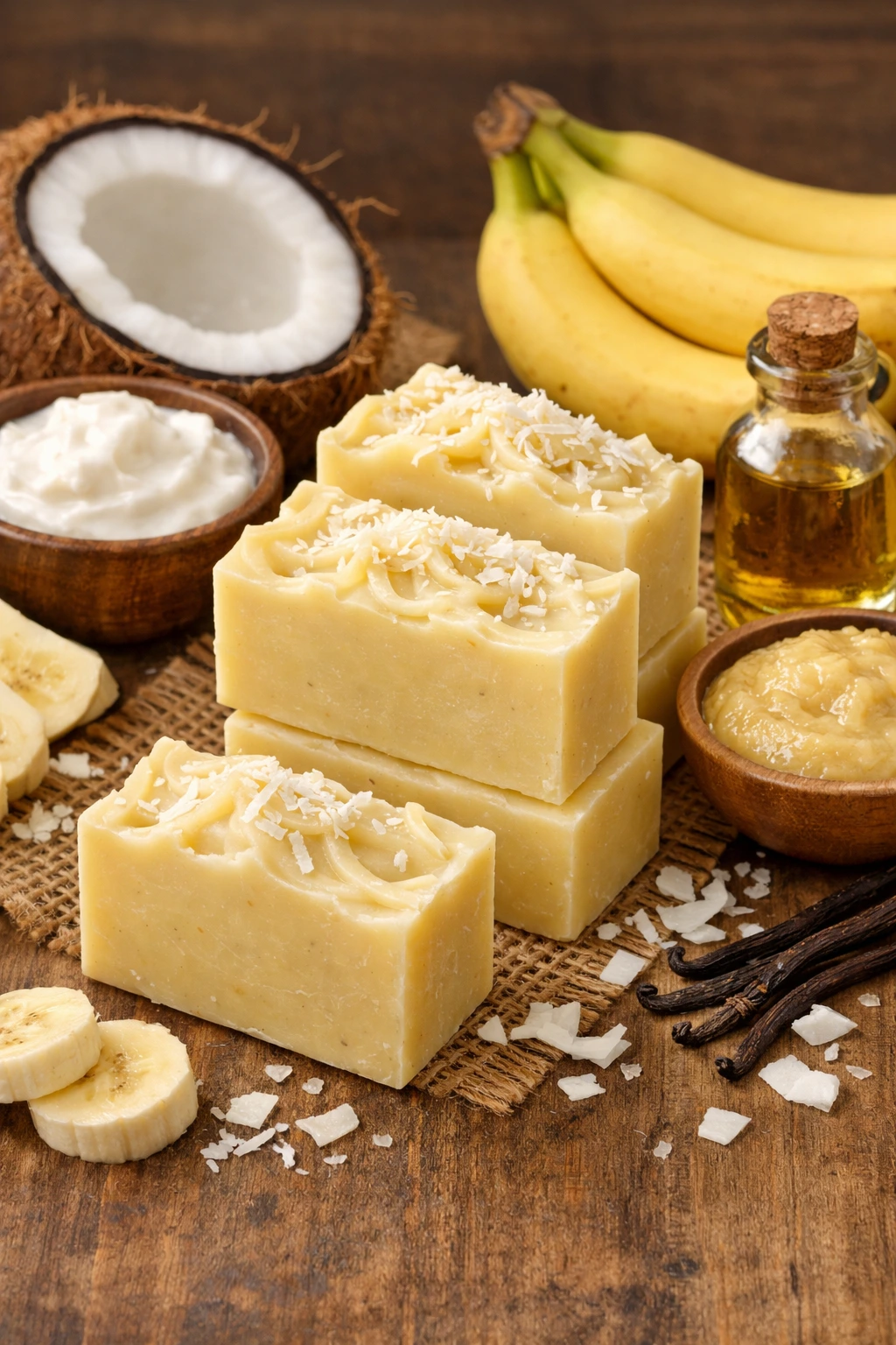 Siempre me sorprende cómo una combinación tan sencilla puede cambiar por completo la sensación de la piel. La banana madura aporta azúcares naturales que ayudan a acondicionar, mientras la crema de coco envuelve todo en una suavidad casi sedosa. Cuando uso este jabón en días fríos o después de trabajar mucho con las manos, noto de inmediato una limpieza delicada que no reseca. Es de esos pequeños rituales que hacen que la rutina diaria se sienta más especial.