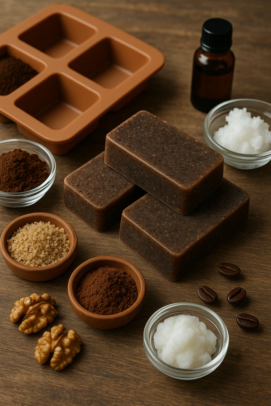 Los tres ingredientes trabajan en conjunto: el café despierta la circulación y deja una textura suave; la nuez molida aporta un exfoliado más fino; y el cacao hidrata, nutre y añade un toque aromático irresistible. Al juntarlos, se obtiene un jabón que no solo limpia, sino que deja la piel más flexible y luminosa. Cada vez que lo preparo, me sorprende lo bien que funciona con tan pocos componentes.