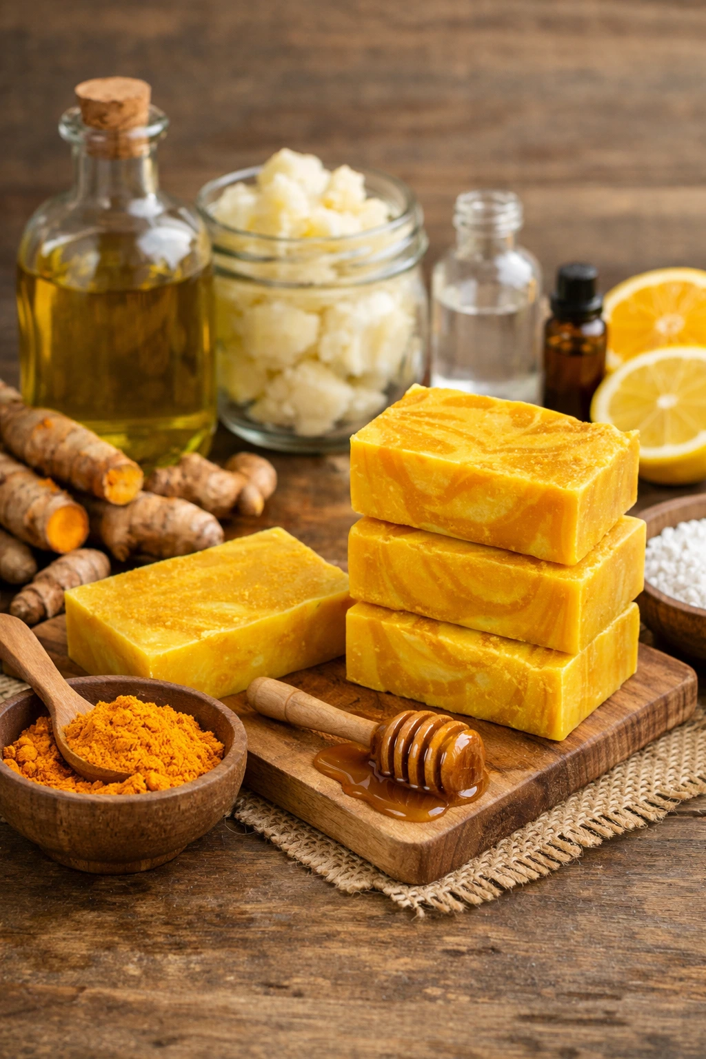 Siempre me sorprende cómo un ingrediente tan sencillo puede cambiar por completo una receta. La cúrcuma, con su color dorado intenso y su aroma cálido, aporta a este jabón artesanal una sensación de cuidado real desde el primer uso. Cuando lo preparo en casa, noto que la cocina se llena de un perfume suave, casi terroso, que invita a seguir creando.