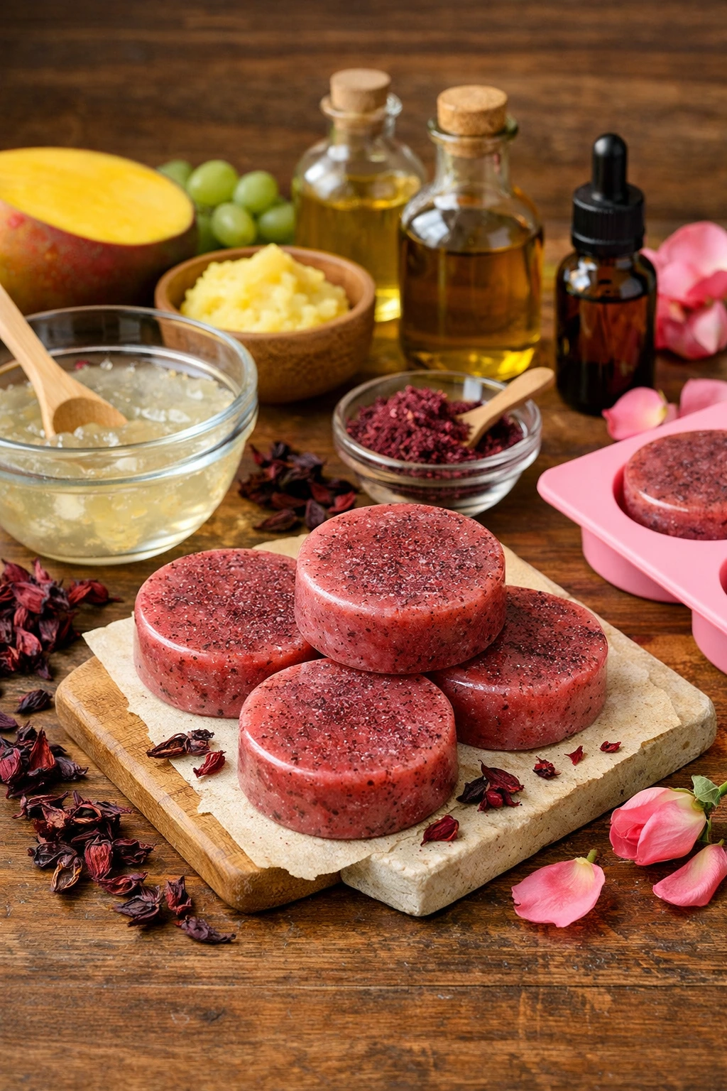 Este jabón de ibisco seco y manteca de mango es una receta sencilla pero elegante. Siempre disfruto prepararlo porque el resultado es bonito, aromático y muy agradable para la piel. Una vez que lo pruebes, probablemente se convertirá en uno de tus favoritos.