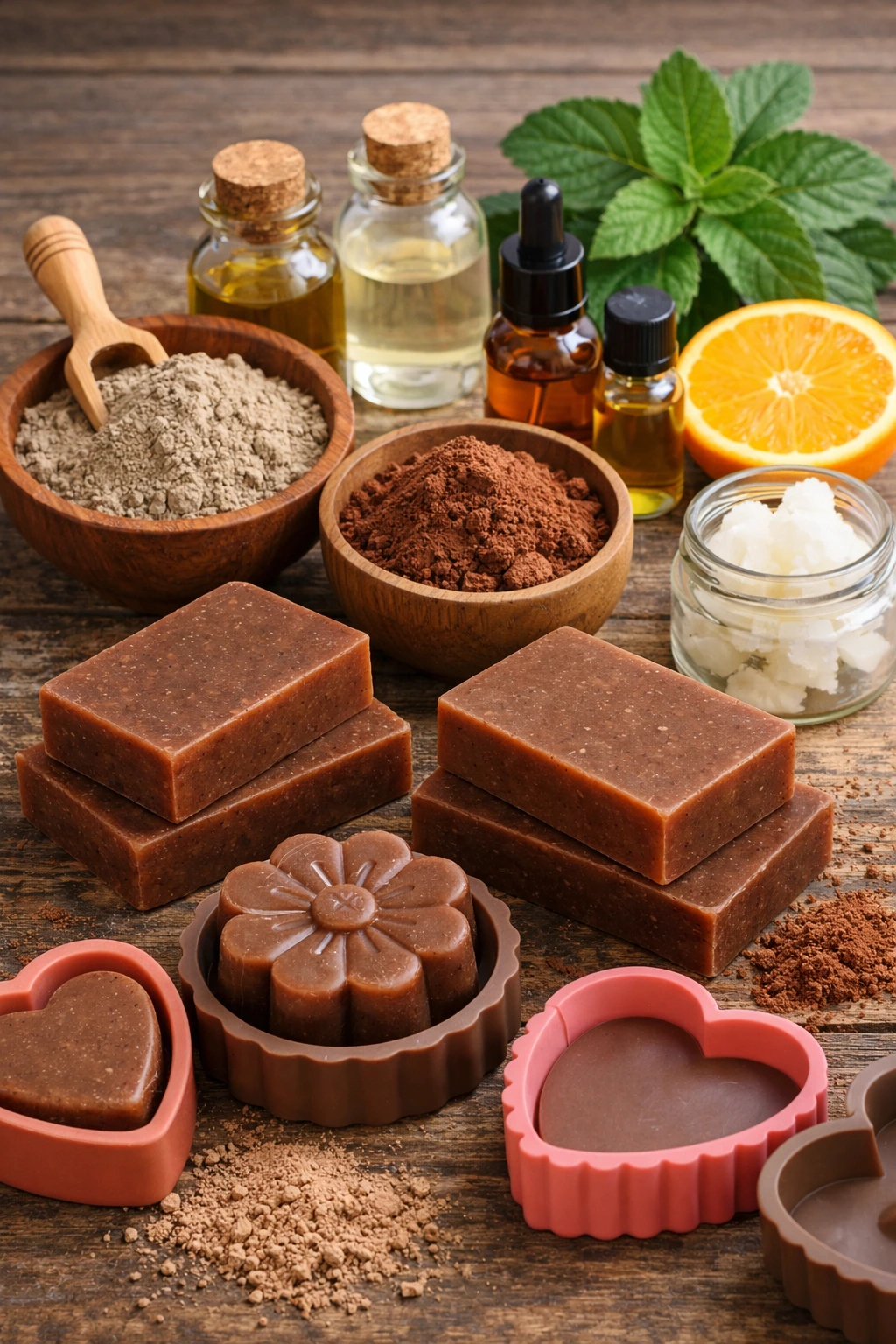 Este jabón artesanal tiene algo que me encanta desde el primer momento en que lo preparo: el aroma profundo del cacao mezclado con notas cítricas y terrosas que se sienten incluso antes de que solidifique. No es solo un jabón bonito, es una pieza funcional pensada para limpiar la piel sin agredirla. La arcilla marrón aporta ese efecto purificante real, mientras que el cacao suaviza y deja una sensación agradable al tacto. Cada vez que lo uso, noto la piel limpia pero cómoda, nada tirante.