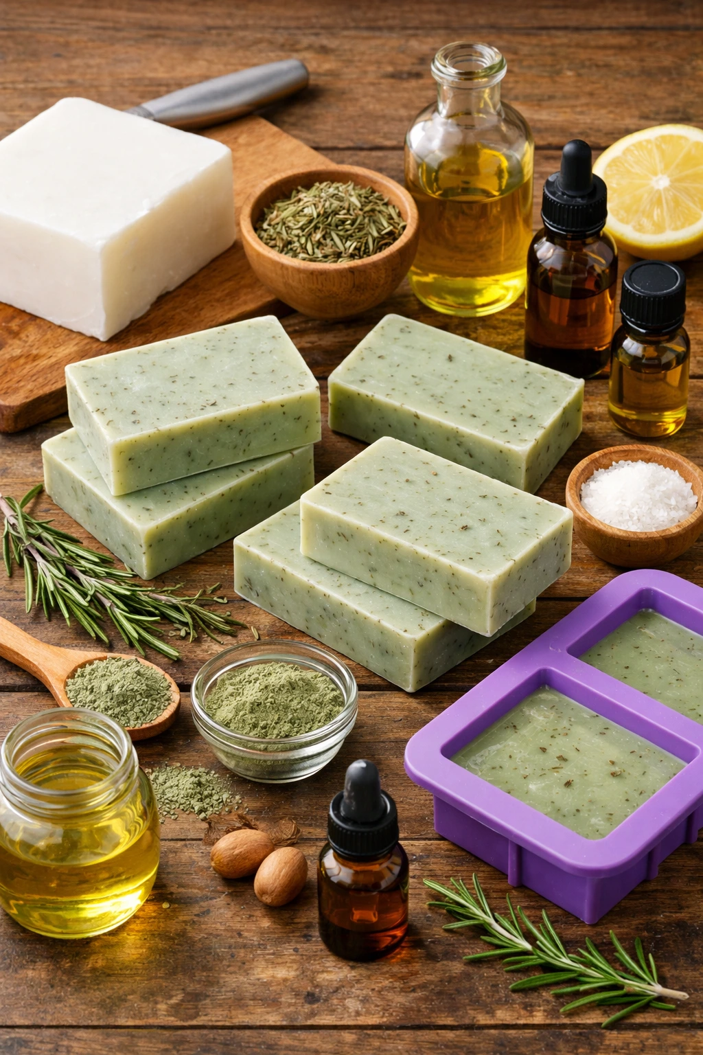 Jabón purificante de romero seco y arcilla verde hecho en casa