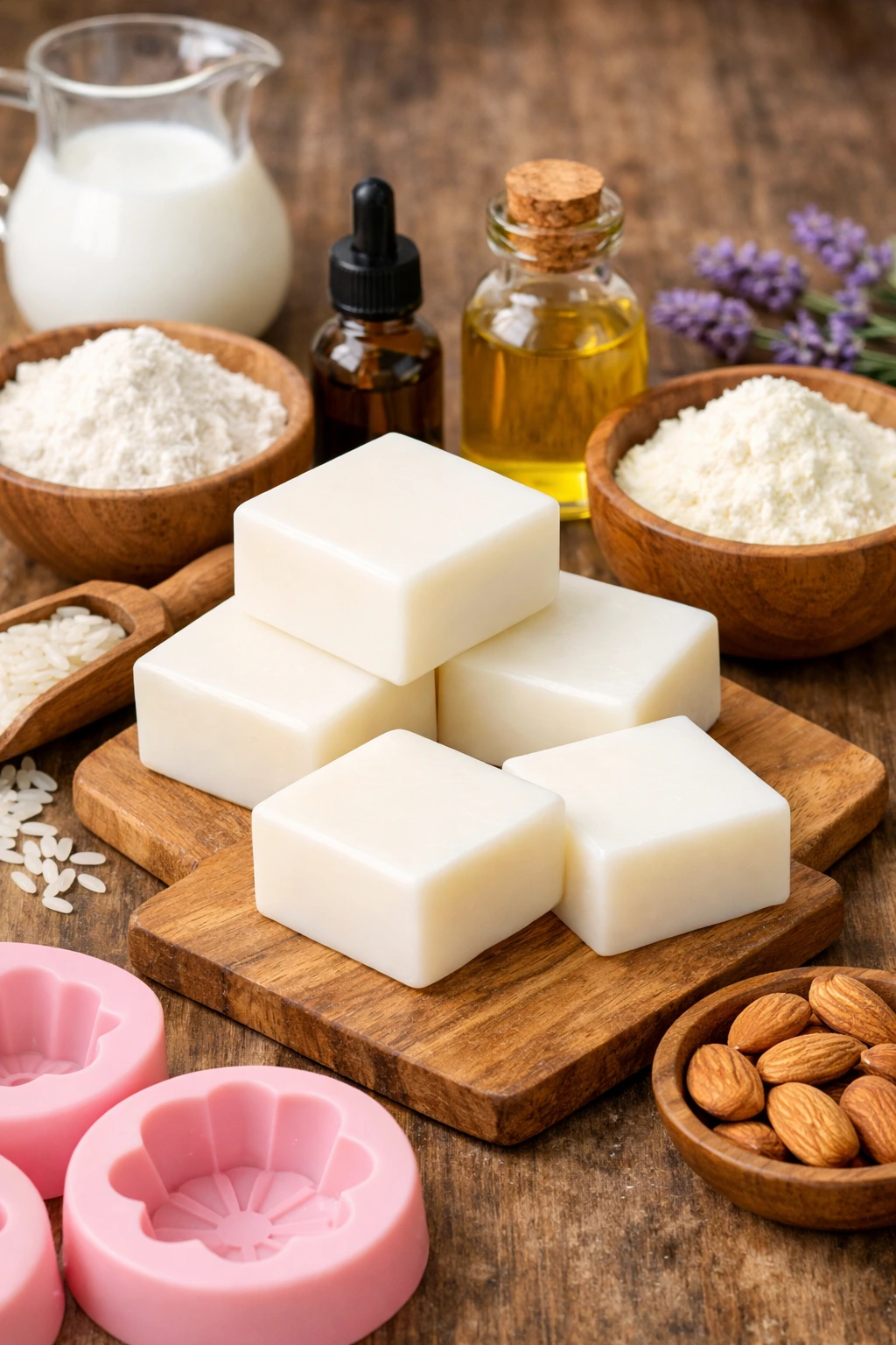 La primera vez que preparé este jabón, me sorprendió lo suave que quedó al tacto. Al desmoldarlo, la superficie se siente lisa, casi aterciopelada, y al usarlo notas una espuma cremosa que no reseca. La combinación de harina de arroz fina y leche en polvo crea esa sensación sedosa tan agradable, ideal para el uso diario. Yo lo uso mucho en épocas de frío, cuando la piel pide algo más reconfortante, y siempre vuelvo a esta fórmula porque resulta estable y confiable.
