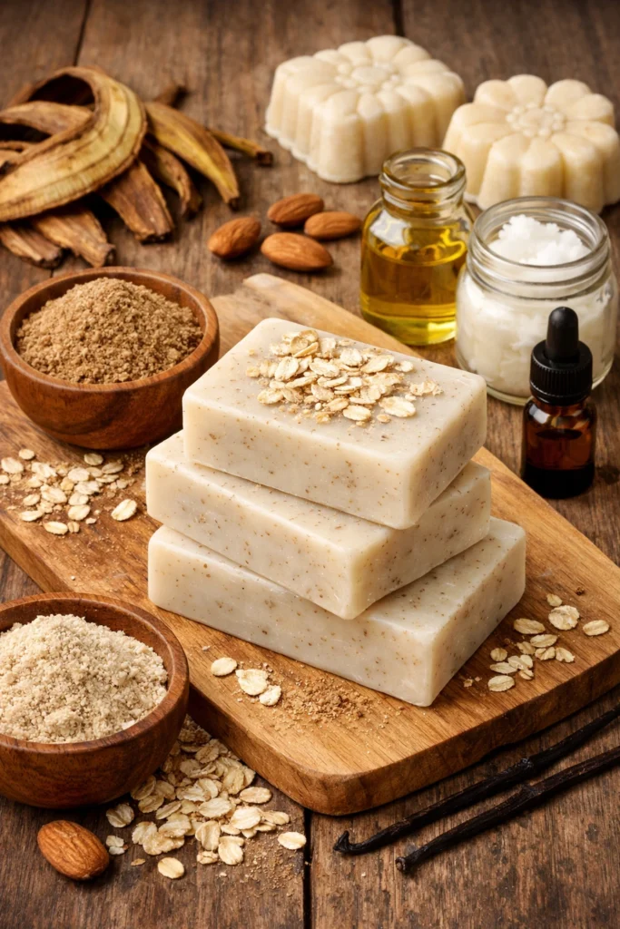 Jabón nutritivo de cáscara de plátano seca y avena para uso diario