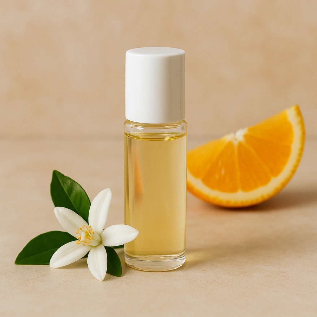 El aceite esencial de azahar aporta la elegancia floral, mientras que la naranja dulce ilumina el conjunto con una frescura tranquila. Cuando añado vainilla, la mezcla se vuelve más acogedora y con un toque cremoso que permanece cerca de la piel sin hacerse pesado. Es el tipo de fragancia que invita a acercarse más para sentirla.